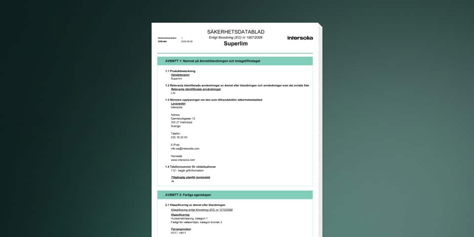 Ein Sicherheitsdatenblatt (SDB) ist ein strukturiertes Dokument, das entweder digital oder in Papierform vorliegt und sich auf einen bestimmten chemischen Stoff oder ein Gemisch bezieht. Es enthält detaillierte Informationen über die Eigenschaften des Produkts, mögliche Gefahren für Mensch und Umwelt sowie praktische Hinweise zur sicheren Handhabung, Lagerung, zum Transport und zur Entsorgung. Ziel des Sicherheitsdatenblatts ist es, Unfälle zu vermeiden, die Gesundheit zu schützen und das Risiko von Umweltschäden zu verringern.